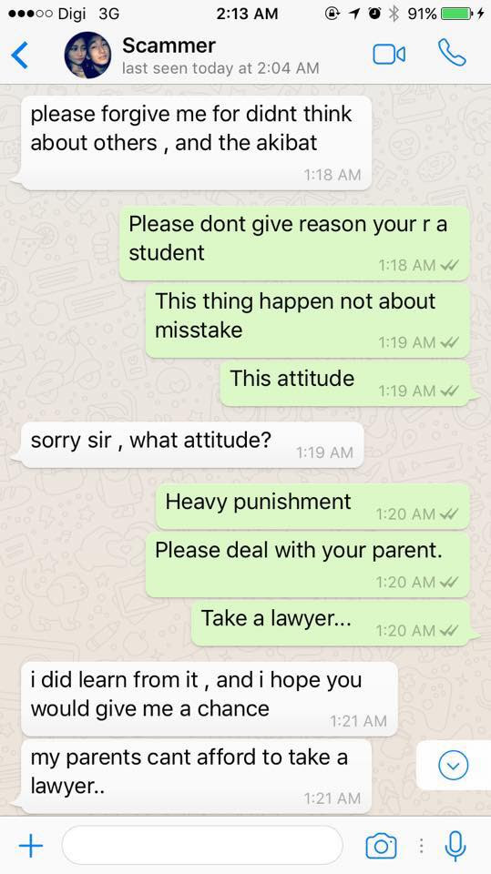 'Saya minta maaf & akan bayar balik duit abang, tolong tarik balik laporan polis' - rayu Scammer