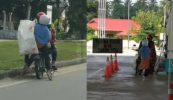 Dalam keadaan yang mendesak dan keluarga perlu disara, si ibu ini sanggup meredah panas terik matahari dengan menunggang motosikalnya untuk mencari tin dan botol kosong. Hasil jualannya kelak boleh digunakan untuk keluarganya dan mungkin untuk perbelanjaan sekolah anaknya.