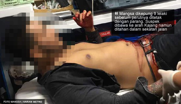 "Lelaki yang parah dibawa ke Hospital Kajang untuk rawatan. Mangsa dirawat di Zon Merah, Unit Rawatan Rapi (ICU) Hospital Kajang dalam keadaan stabil.