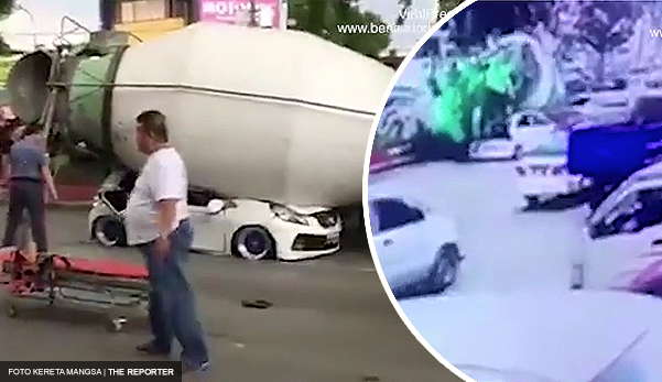 Namun, lori tersebut hilang kawalan lalu menghempap sebuah kereta di sebelah kanannya sehingga bumbungnya kemek. Lebih malang lagi, lori pembancuh simen terbabit pada ketika itu membawa muatan simen yang penuh dan telah dibancuh, menyebabkan pemandunya maut.