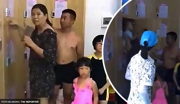 Kakitangan kolam renang yang membantu pasangan itu membuka pintu loker tersebut terkejut apabila dia mendapati ada seorang kanak-kanak di dalamnya.