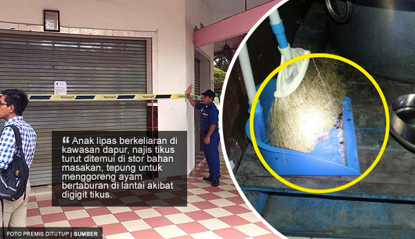 Di satu sudut, ada beberapa ekor anak lipas berkeliaran di kawasan dapur. Lebih teruk lagi apabila najis tikus turut ditemui di stor bahan masakan. Selain itu, tepung untuk menggoreng ayam bertaburan di lantai akibat digigit tikus.