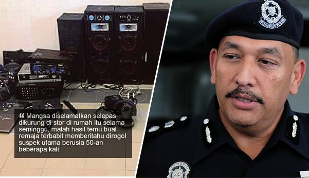 "Mangsa diselamatkan selepas dikurung di stor di rumah itu selama seminggu, malah hasil temu bual remaja terbabit memberitahu dirogol suspek utama berusia 50-an beberapa kali.